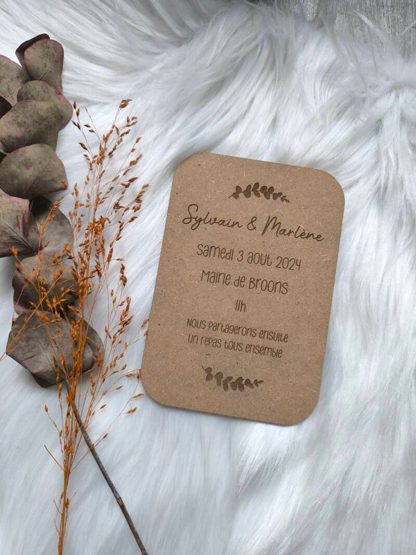 Invitation mariage en MDF, épaisseur 3mm