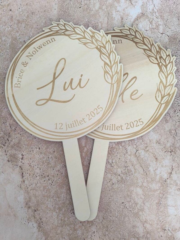 Personnalisation avec les prénoms des mariés ainsi que la date.