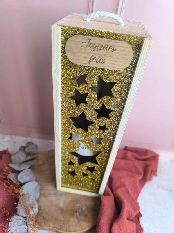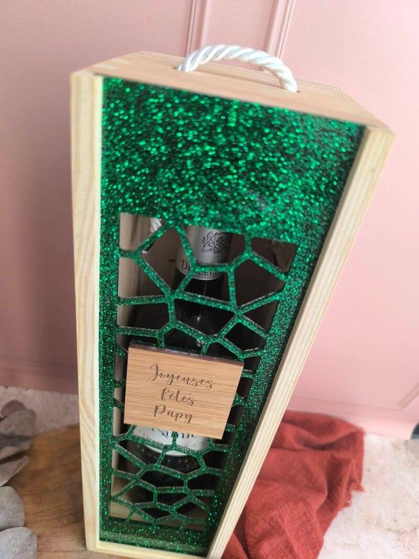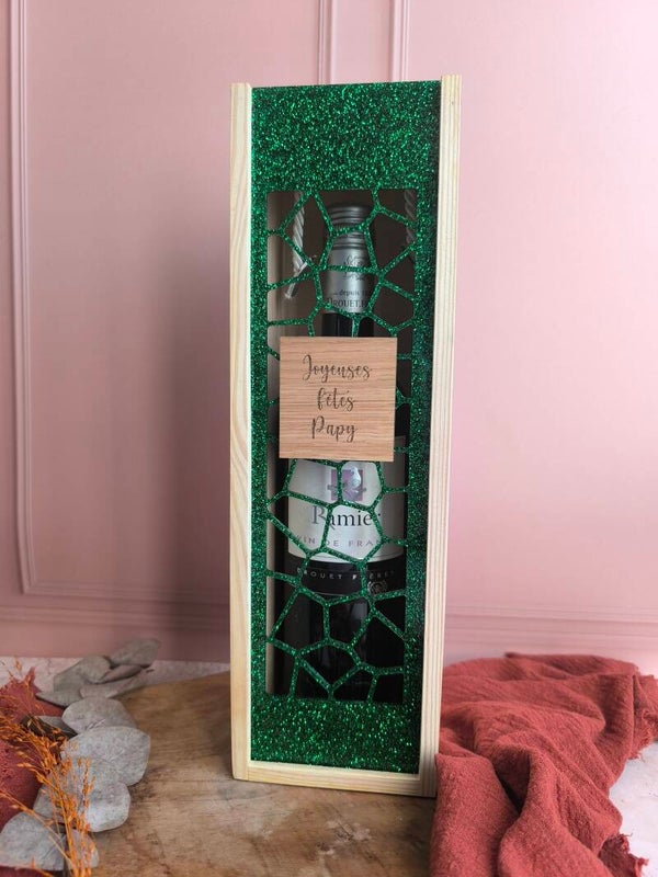 Coffret vin pour les fêtes de NoëlLa glissière peut être en plexiglass Possibilité de mettre le prénom de la personne